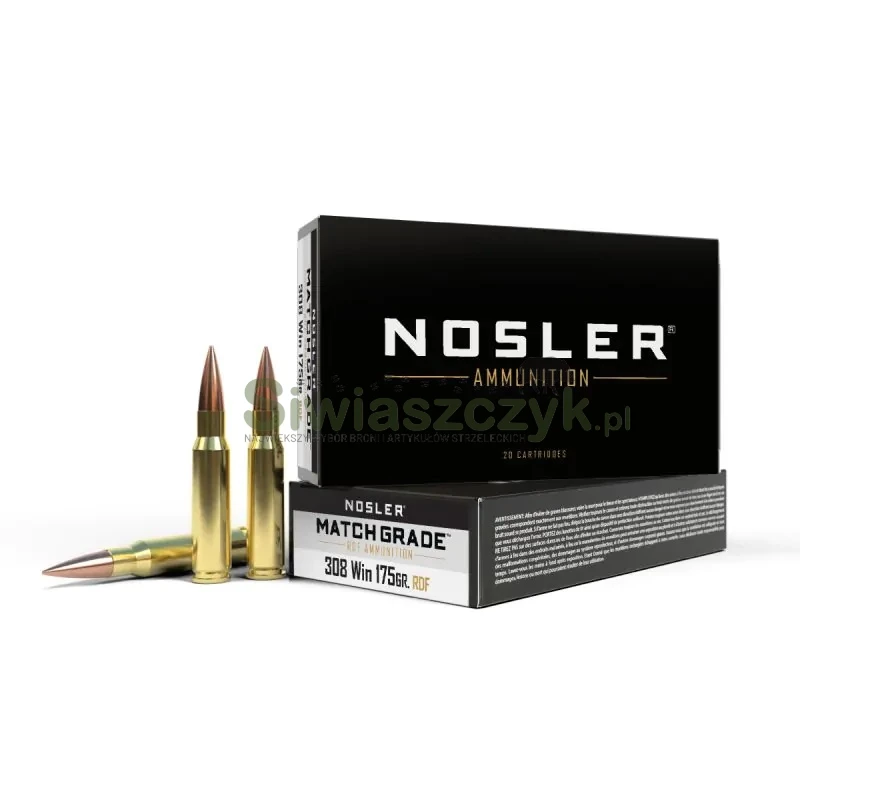 Dla strzelców operujących na platformie .308 Winchester, którzy chcą sięgnąć znacznie dalej niż pozwala na to standardowa masa 168 grainów, Nosler przygotował coś absolutnie wyjątkowego. Amunicja z linii Match Grade, wykorzystująca rewolucyjny pocisk RDF (Reduced Drag Factor) o masie 175 grainów (11,3 g), to balistyczny majstersztyk zaprojektowany z myślą o maksymalnych odległościach. Dodatkowa masa pocisku oraz jego wybitnie aerodynamiczny profil sprawiają, że pocisk znacznie dłużej utrzymuje prędkość naddźwiękową i zauważalnie lepiej opiera się bocznym podmuchom wiatru – co na dystansach 600, 800 czy 1000 metrów robi kolosalną różnicę na tarczy.