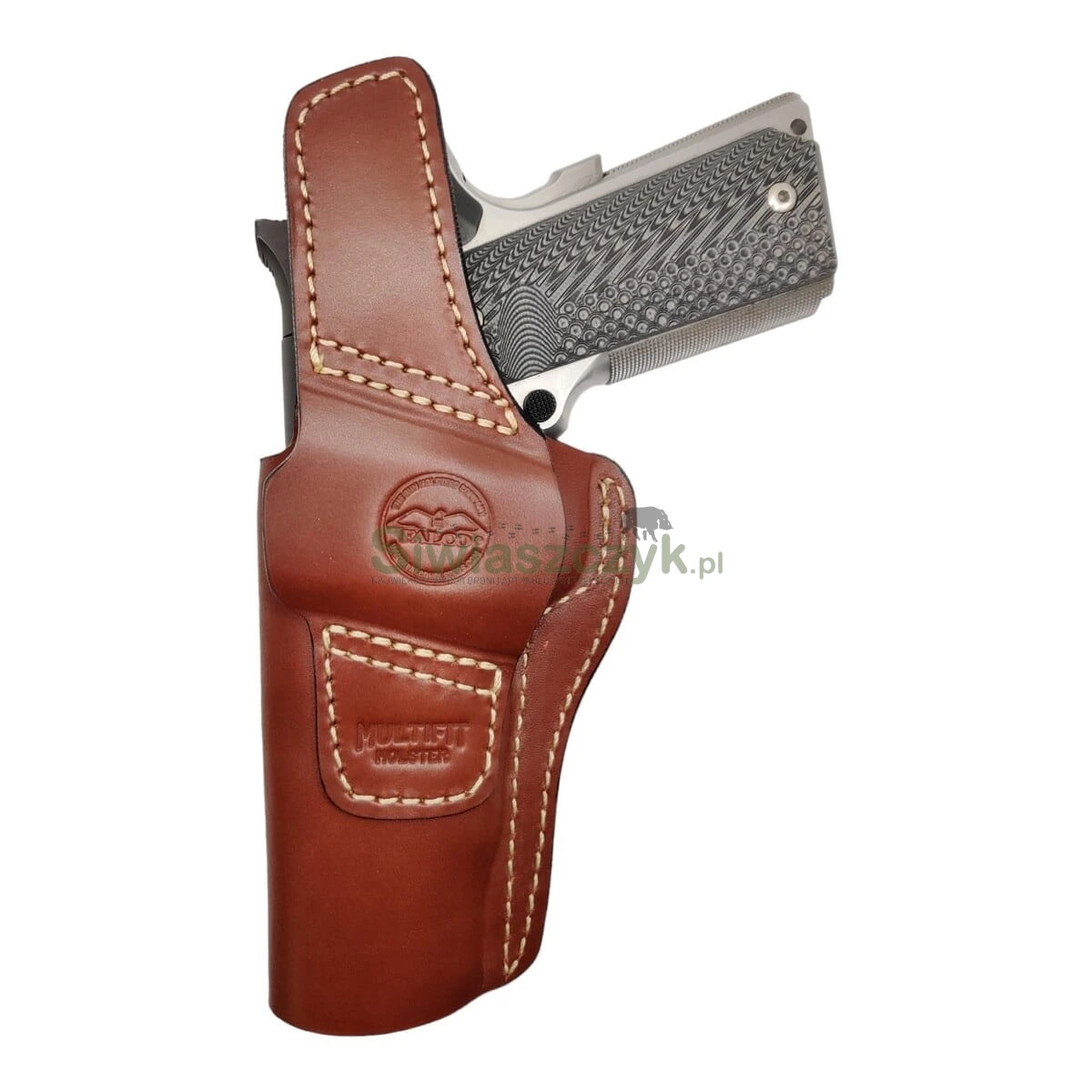 - Dedykowane dopasowanie do 1911 – precyzyjnie wyprofilowana forma zapewnia idealne spasowanie z klasycznymi pistoletami 1911, gwarantując pewne trzymanie broni oraz bezpieczeństwo podczas przenoszenia.