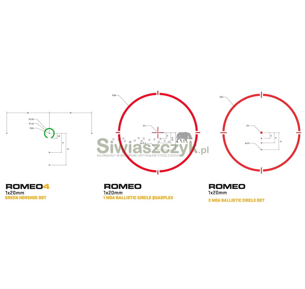 Użytkownicy mogą wybierać spośród 4 różnych zintegrowanych opcji celownika (kropka, kropka w kółko, kropka z uchwytami, kropka w kółko z uchwytami)