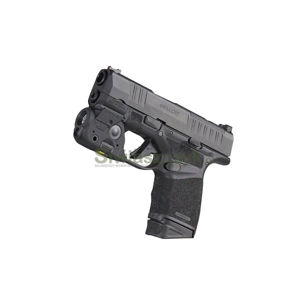 Stramlight TLR-6 przeznaczona do mocowania do kabłąka spustowego na pistoletach SA Hellcat. Trwała, odporna na uderzenia konstrukcja urządzenia zapewnia klasę wodoodporności IPX4 oraz chroni przed upadekiem z wysokości 1 m.