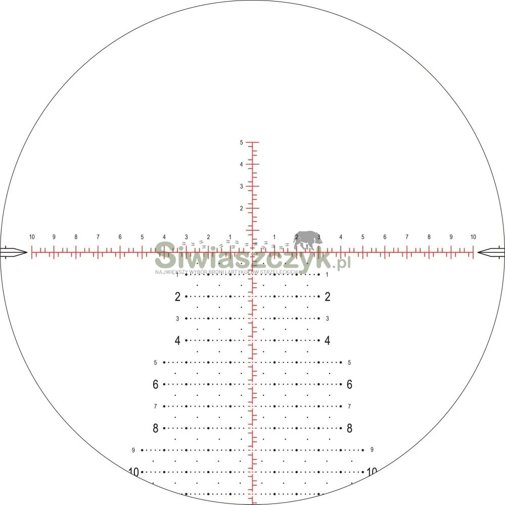 Potężny tubus o średnicy 34 mm skrywa w sobie mechanikę o pancernej wytrzymałości, zdolną przetrwać twardy odrzut najpotężniejszych kalibrów magnum (np. .338 LM czy .375 CheyTac). Oferuje on imponujący zakres regulacji – aż 35 Mil w pionie i 23 Mil w poziomie, co jest kluczowe podczas oddawania strzałów na ekstremalne odległości (ELR). Jasny obiektyw 56 mm w połączeniu z legendarnym, wielowarstwowym szkłem ED gwarantuje niesamowitą rozdzielczość, kontrast i transmisję światła, pozwalając na pewną identyfikację celu nawet w głębokiej szarówce. Bębny wyskalowane w systemie metrycznym (1 klik to 0.1 Mil-rad) perfekcyjnie współgrają z siatką MIL-XT, czyniąc nanoszenie poprawek wiatrowych i wysokościowych procesem w pełni intuicyjnym.