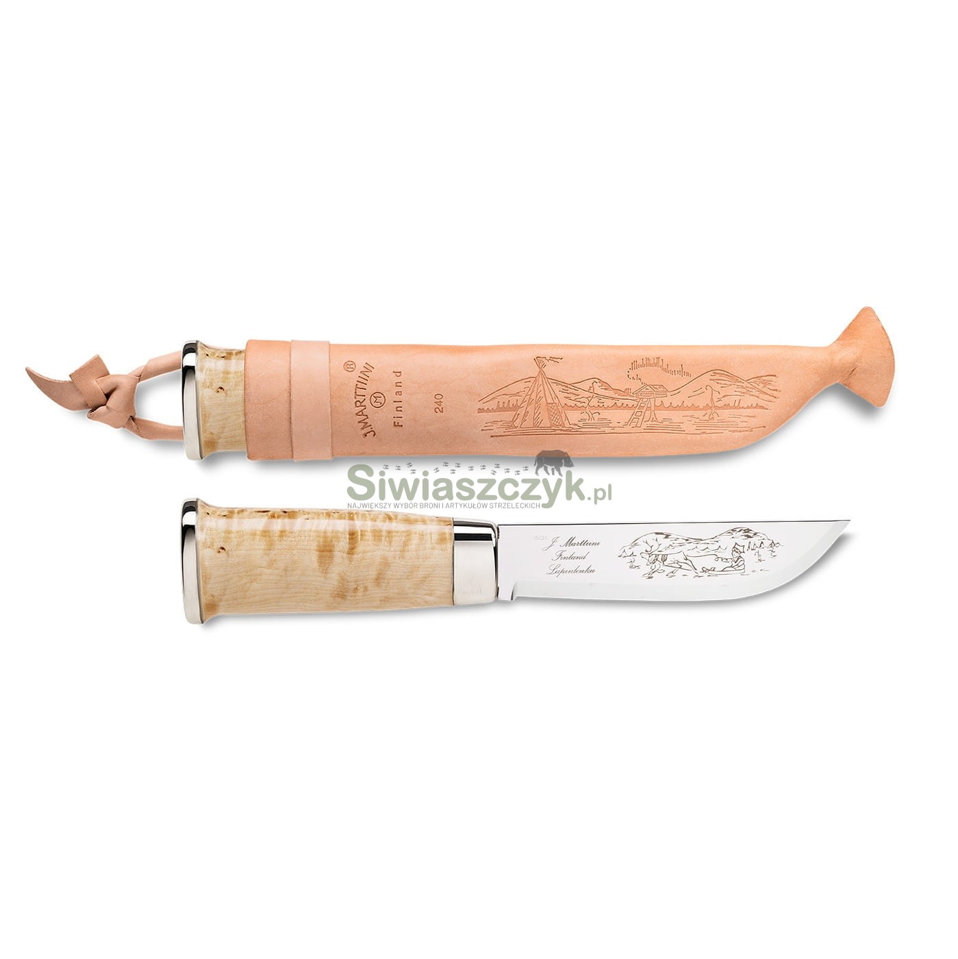MARTTIINI Lapp 240 (240010) to niezawodny nóż myśliwski i outdoorowy, który sprawdzi się w trudnych warunkach terenowych. Dzięki stalowemu ostrzu, ergonomicznemu drewnianemu uchwytowi i skórzanej pochwie, stanowi doskonałe narzędzie dla profesjonalistów i pasjonatów przyrody.