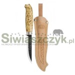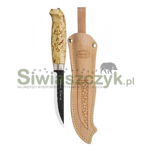 Rękojeść z naturalnej brzozy gwarantuje pewny i ergonomiczny chwyt, pozwalając na komfortowe operowanie nożem podczas myślistwa, bushcraftu czy survivalu. Solidna konstrukcja noża sprawia, że jest niezawodnym towarzyszem w każdych warunkach, a klasyczna skórzana pochwa zapewnia bezpieczne i wygodne przenoszenie.