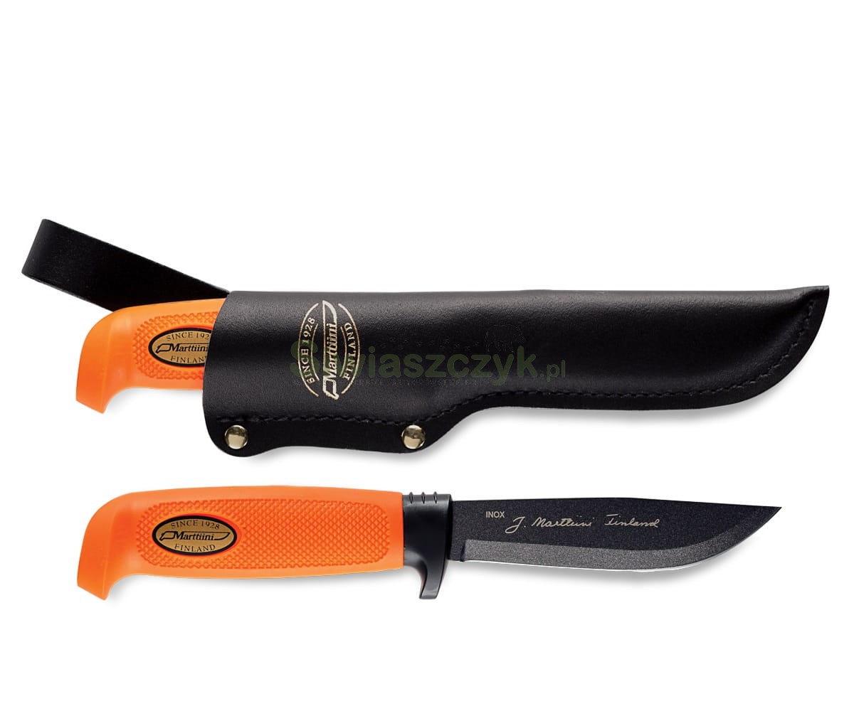 Marttiini Skinner Martef Orange to narzędzie zaprojektowane z myślą o dwóch kluczowych wyzwaniach w łowisku: efektywności cięcia i widoczności sprzętu. Ten model wyróżnia się jaskrawą, pomarańczową rękojeścią. Każdy, kto choć raz szukał odłożonego na chwilę noża w wysokiej trawie, śniegu czy leśnym poszyciu, doceni to rozwiązanie. Hi-Vis (High Visibility) to gwarancja, że nie zgubisz swojego narzędzia nawet po zmroku. W połączeniu z powłoką Martef, nóż ten stanowi idealny wybór do skórowania i patroszenia, gdzie liczy się precyzja i higiena.
