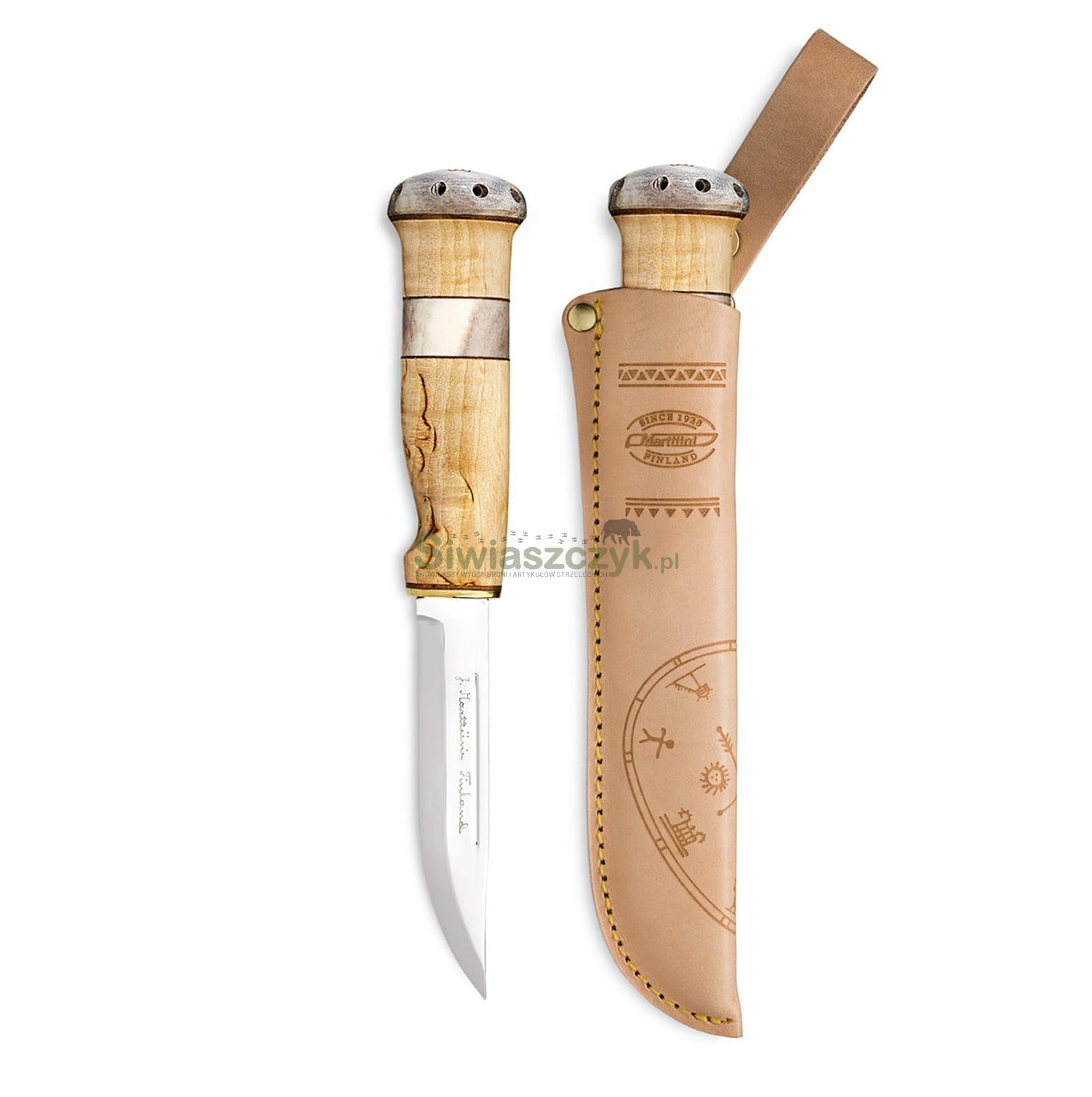 Rękojeść z fińskiej brzozy i poroża w połączeniu z detalami z mosiądzu tworzy niepowtarzalny, luksusowy wygląd. Całość uzupełnia skórzana pochwa, która podkreśla charakter noża i zapewnia bezpieczne przenoszenie. To model dedykowany zarówno koneserom, jak i miłośnikom fińskiej tradycji.
