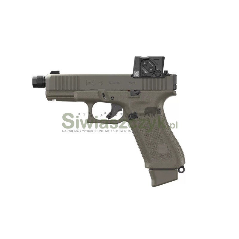 Glock 45 MOS Hunter Edition w kalibrze 9x19 mm to unikalny zestaw taktyczny, który łączy niezawodność i ergonomię jednej z najpopularniejszych platform Glocka z fabrycznym pakietem akcesoriów najwyższej klasy. Ta specjalna edycja w przyciągającym wzrok oliwkowo-zielonym (Olive-Green) kolorze oferuje wszystkie sprawdzone funkcje 5. Generacji i jest gotowa do działania prosto z pudełka.