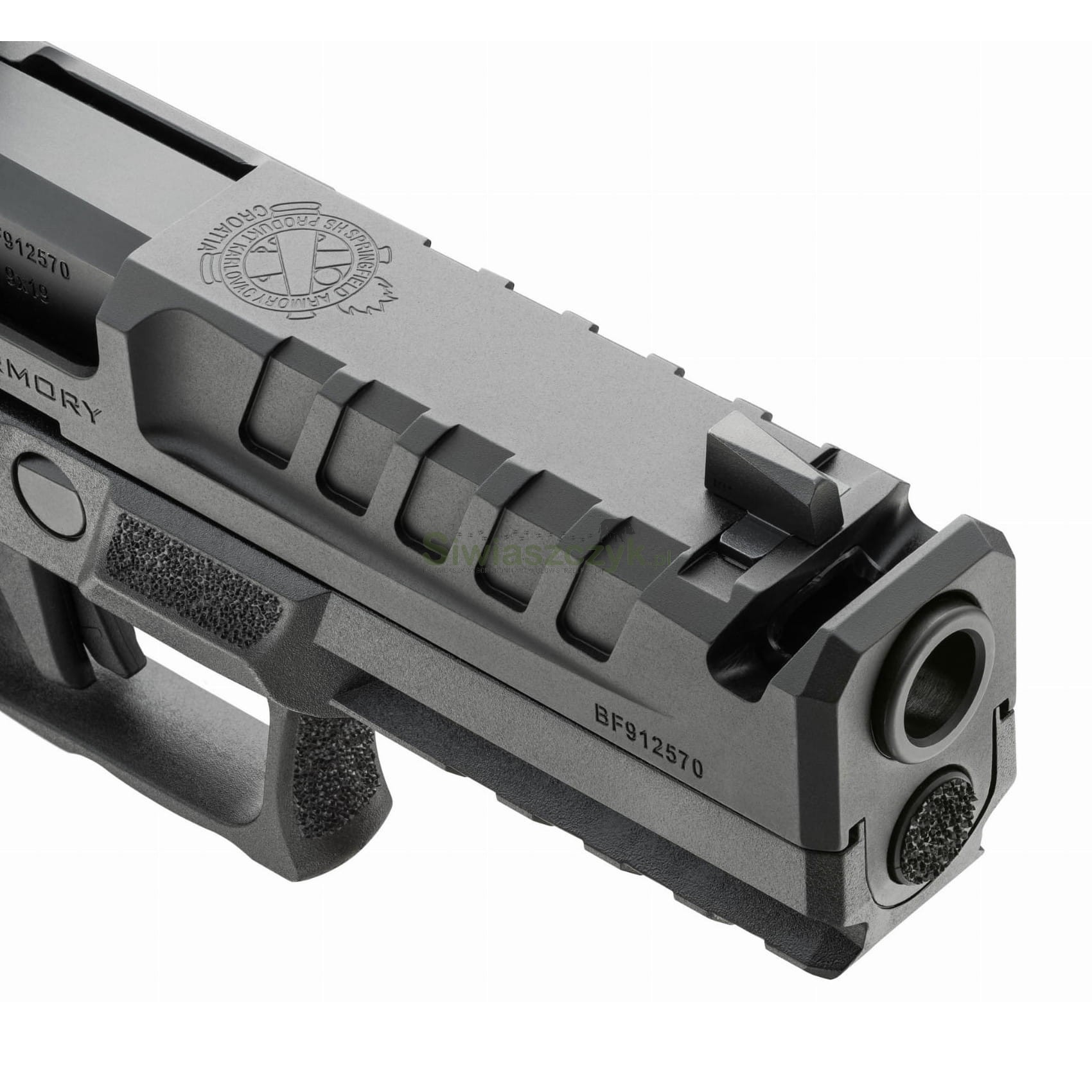 - Nowoczesny design – agresywne nacięcia na zamku, ergonomiczny chwyt oraz kompaktowe wymiary sprawiają, że pistolet doskonale leży w dłoni i prezentuje się bardzo atrakcyjnie.