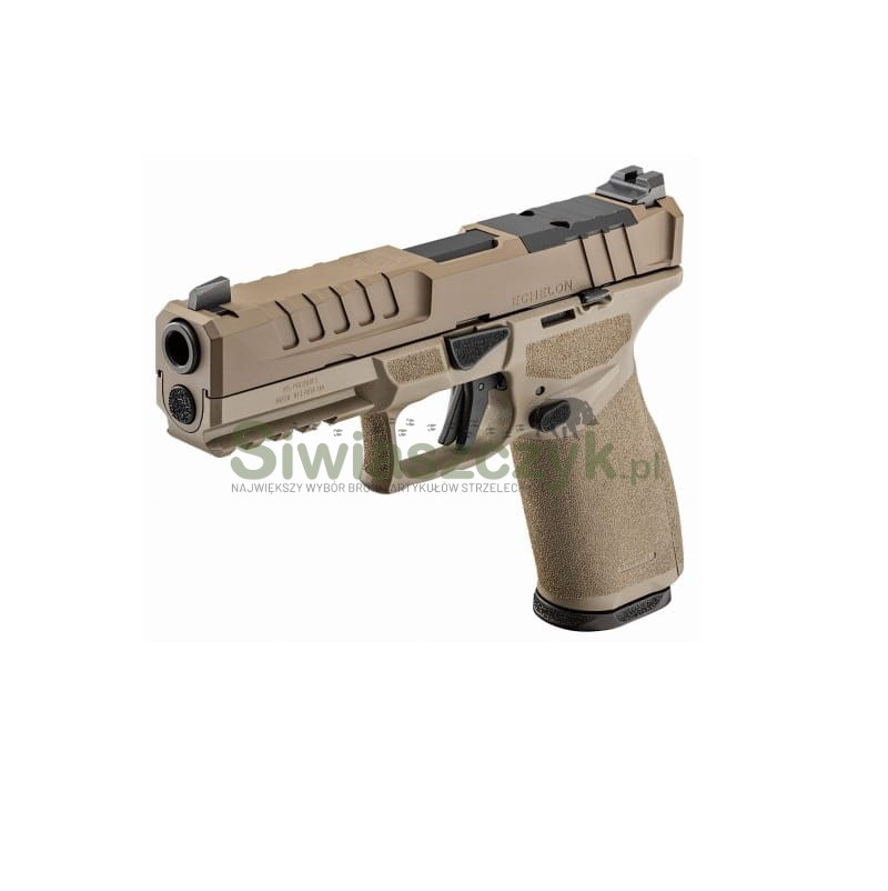 Pistolet został zaprojektowany zgodnie z najnowszymi trendami i standardami dlatego w standardzie uzyskujemy pełną obustronność konstrukcji: zdublowany zrzut magazynka oraz zamka. Zrzut zamka jest cofnięty i dobrze wpisany w kształt chwytu co zmniejszy prawdopodobieństwo nie zatrzymywania się zamka po ostatnim strzale przy niedostosowanym chwycie. Głębokie wycięcia w zamku z pewnością ułatwią przeładowanie, konstruktorzy pomyśleli o szerokim gronie odbiorców i przewężenie do pewniejszego przeładowania znajduje się na przedzie zamka oraz standardowo w tylnej części zamka.