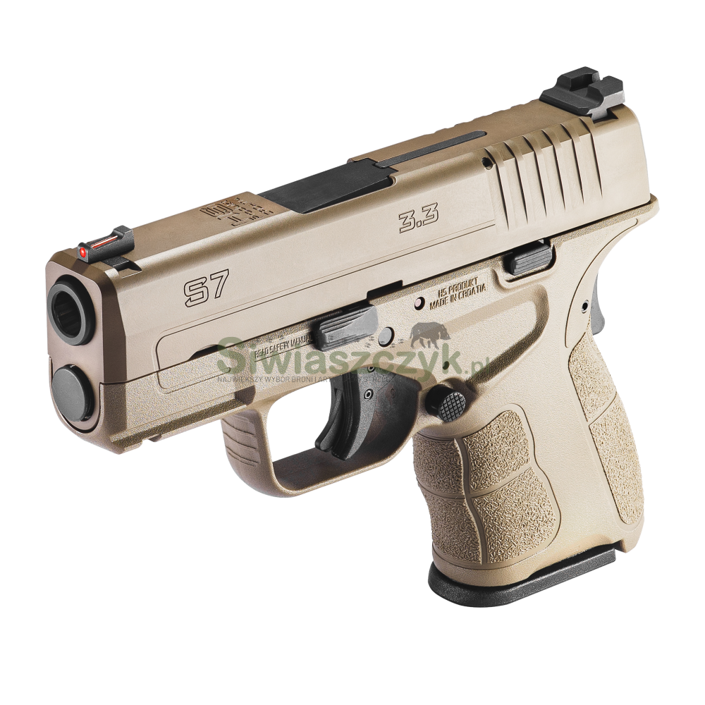 Pistolet S7 3.3 jest drugą generacją kultowego pistoletu XDS. Linia S charakteryzuje się małą i smukłą konstrukcją idealnie sprawdzającą się jako pistolety przeznaczone do codziennego noszenia i samoobrony. S7 3.3 posiada bezpiecznik chwytowy, bezpiecznik w języku spustowym oraz wskaźnik załadowania komory nabojowej ułatwiający wzrokową kontrolę naboju w komorze.