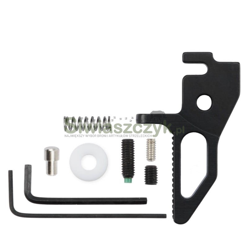 Teksturowany spust zapewnia antypoślizgową powierzchnię niezależnie od szybkości strzelania lub pogody i pozwala na krótkie, powtarzalne, identyczne pociągnięcia spustu.