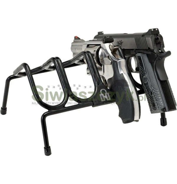Stabilny stojak pod 4 pistolety lub rewolwery. Wykonany z drutu poleczonego powłoką ochronną. Posiada gumowane zakończenia nóżek. Broń można na nim ustawić kabłąkiem w dół lub w górę.