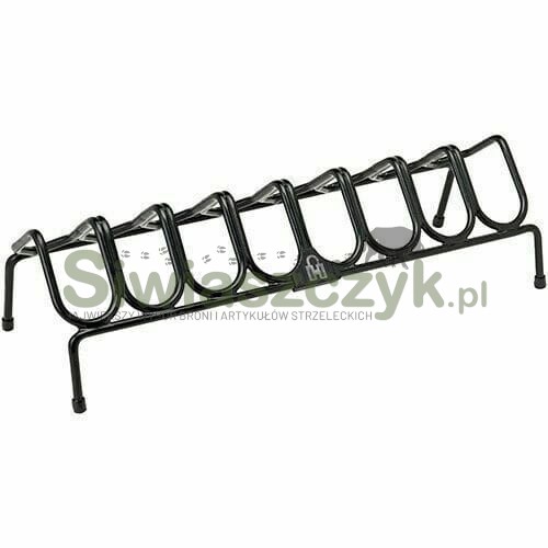 Stabilny stojak pod 8 pistoletów lub rewolwerów. Wykonany z drutu poleczonego powłoką ochronną. Posiada gumowane zakończenia nóżek. Broń można na nim ustawić kabłąkiem w dół lub w górę.
