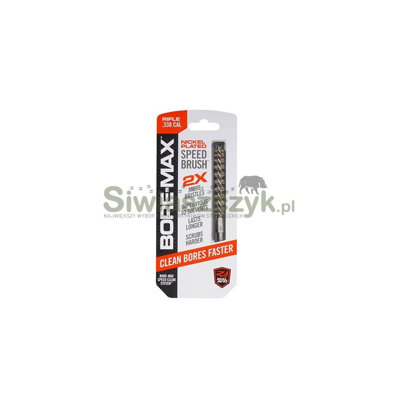 Szczotka Bore-Max Speed Brush posiada dwukrotnie większą gęstość włosia w porównaniu z tradycyjnymi szczotkami czyszczącymi. Taka konstrukcja zapewnia dokładniejsze i szybsze usuwanie osadów prochowych, miedzi oraz nagaru, skracając czas konserwacji i poprawiając stan techniczny broni.