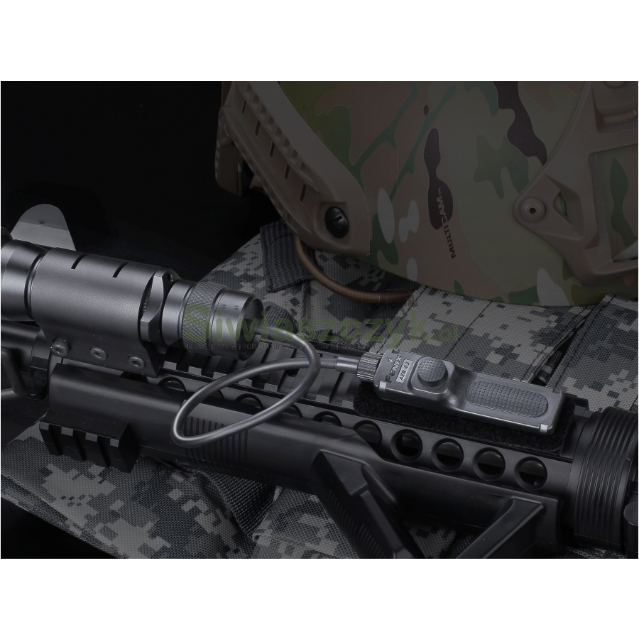 Adapter dokręcany do latarek (gwint TR22,4×1,5 mm) wykonano z aluminium T6. Metal poddano twardemu anodowaniu HA-III co gwarantuje bardzo wysoką odporność na ścieranie i zarysowania. Włącznik można mocować do broni na dwa sposoby tj. :
