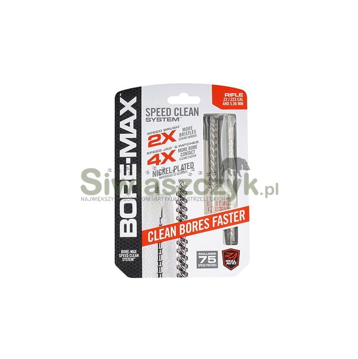REAL AVID Bore Max Speed Clean Set .22/.223/5.56MM to kompletny, profesjonalny zestaw do czyszczenia luf karabinowych zaprojektowany specjalnie do kalibrów .22, .223 i 5,56 mm. Zestaw łączy w sobie wydajną szczotkę Bore-Max Speed Brush, ergonomiczny uchwyt do przecieraków oraz pakiet przecieraków o dużej powierzchni styku, dzięki czemu konserwacja lufy jest szybka, dokładna i bezpieczna.