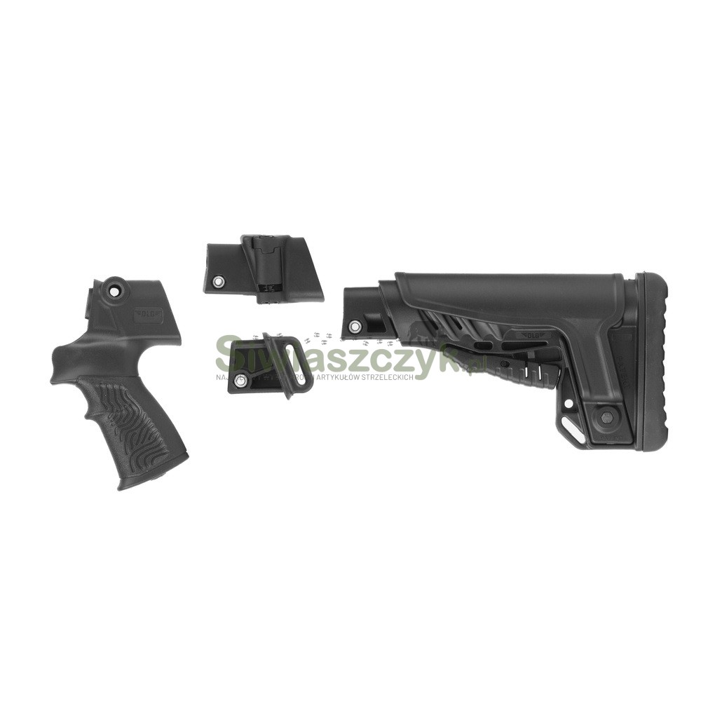 Zestaw akcesoriów do modeli strzelby Mossberg 500 lub 590. Zawiera cztery elementy - chwyt pistoletowy, składany adapter kolby, kolbę teleskopową z adapterem w standardzie Mil-Spec oraz wkładkę montażową zastępującą kolbę. Wszystkie części są ze sobą kompatybilne i pozwalają na dostosowanie ergonomii strzelby do potrzeb użytkownika.