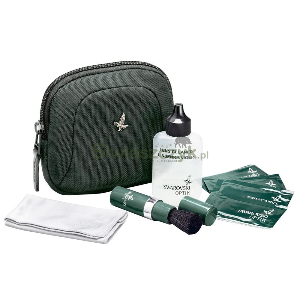 Zestaw do czyszczenia optyki Swarovski. Najwyższej jakości materiał, nawilżane ściereczki, znakomity płyn, pędzelek z naturalnego włosia i gustowny pokrowiec - tego oczekuje się od producenta najwyższej jakości optyki. Wszystko to znajduje się w tym unikalnym zestawie. Wybierając zestaw do czyszczenia optyki Swarovski, masz gwarancję obcowania z najwyższej jakości produktem.
